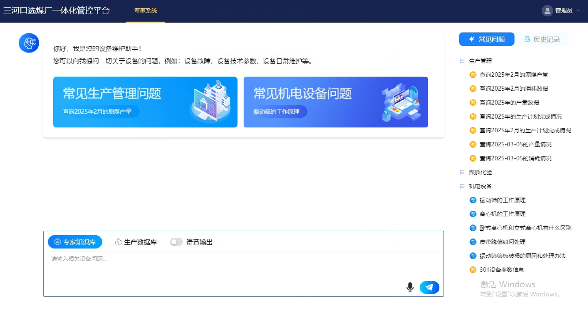 產(chǎn)品簡介:該平臺基于基礎(chǔ)自動化、智能控制、智能檢測等業(yè)務(wù),將選煤生產(chǎn)、運營、管理的各子系統(tǒng)集成整合,通過對生產(chǎn)全過程關(guān)鍵數(shù)據(jù)的提取、分析,實現(xiàn)對產(chǎn)品數(shù)質(zhì)量、生產(chǎn)組織、經(jīng)營成本等管理信息的智能決策,達到諸如設(shè)備智能運維、狀態(tài)智能監(jiān)測、過程智能控制、參數(shù)智能設(shè)定、管理智能精細、決策智能調(diào)節(jié)等目標(biāo),進而為選煤廠的安全高效生產(chǎn)保駕護航。行業(yè)率先提出構(gòu)建行業(yè)垂直領(lǐng)域大模型,基于選煤廠終端生態(tài),通過文字對話、語音交互等方式問答式檢索專業(yè)知識,統(tǒng)計生產(chǎn)狀態(tài),分析設(shè)備問題故障,實現(xiàn)智能化人機交互新模式。